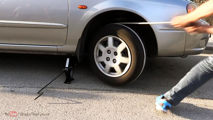 Набор приспособлений элементарный, он есть в каждом автомобиле. Для запуска двигателя требуется автомобильный домкрат и синтетический буксирный ремень.