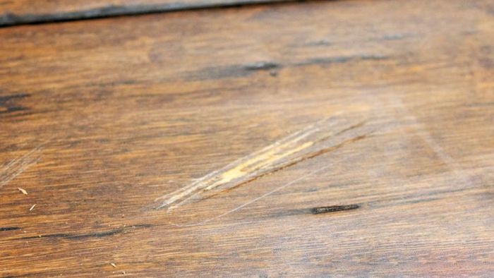 Царапины на деревянной поверхности, а также сколы и прочие дефекты сильно бросаются в глаза. Их наличие неприятно, но никак не влияет на функциональность, поэтому менять доску по столь незначительным причинам нецелесообразно. Чтобы улучшить внешний вид, потертости и повреждения можно скрыть, причем достаточно аккуратно, сделав их почти незаметными.