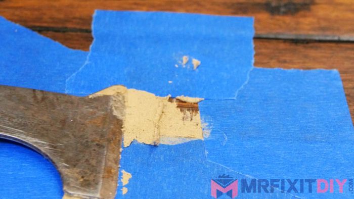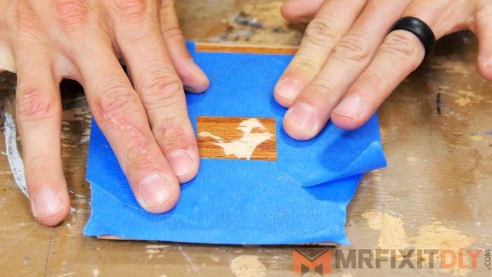 Если повреждение паркета/мебели имеет большую площадь или значительное углубление, то одним карандашом или маркером убрать дефект не получится. Нужно с помощью малярного скотча оклеить периметр поврежденного участка, защитив целые места.