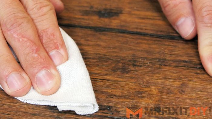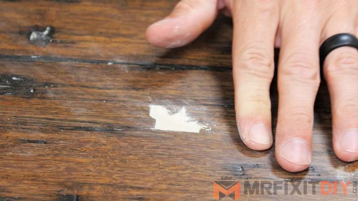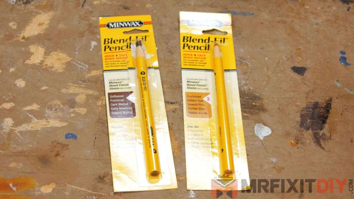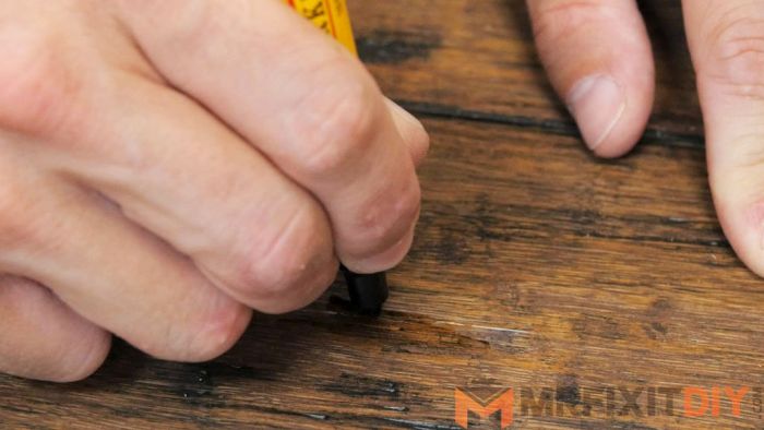 Если на дереве имеются не просто царапины, а рельефные дефекты, то необходимо разогреть восковой карандаш, сделав красящий стержень мягким.