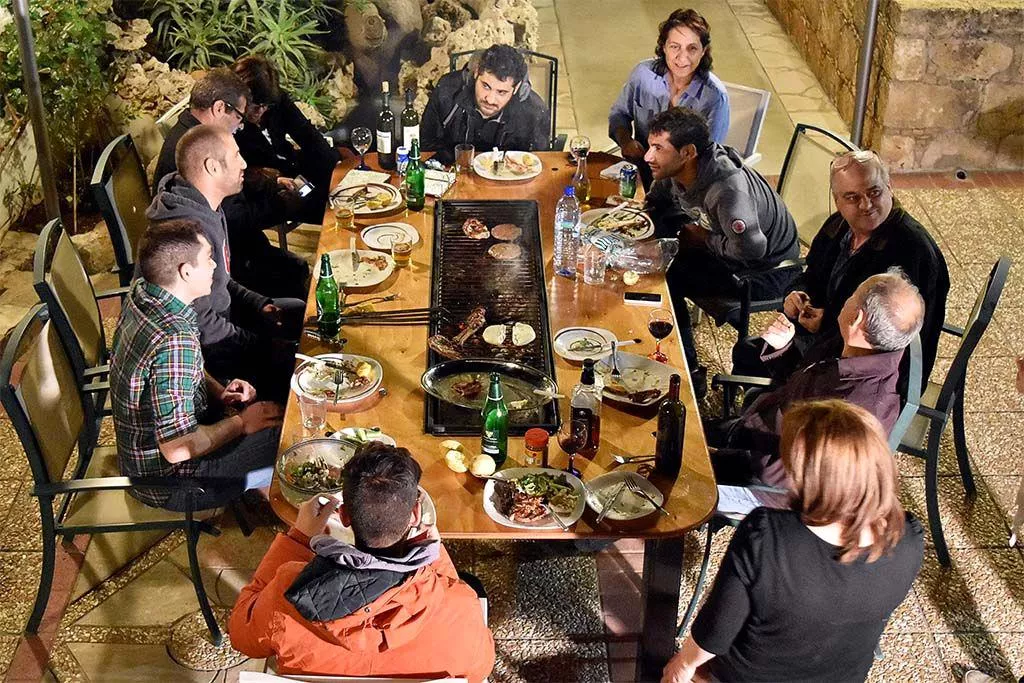 Стол готов, остается лишь заполнить короб для барбекю горящими углями, выставить на него решетки, еду, и насладиться живым общением в дружной компании.![]()