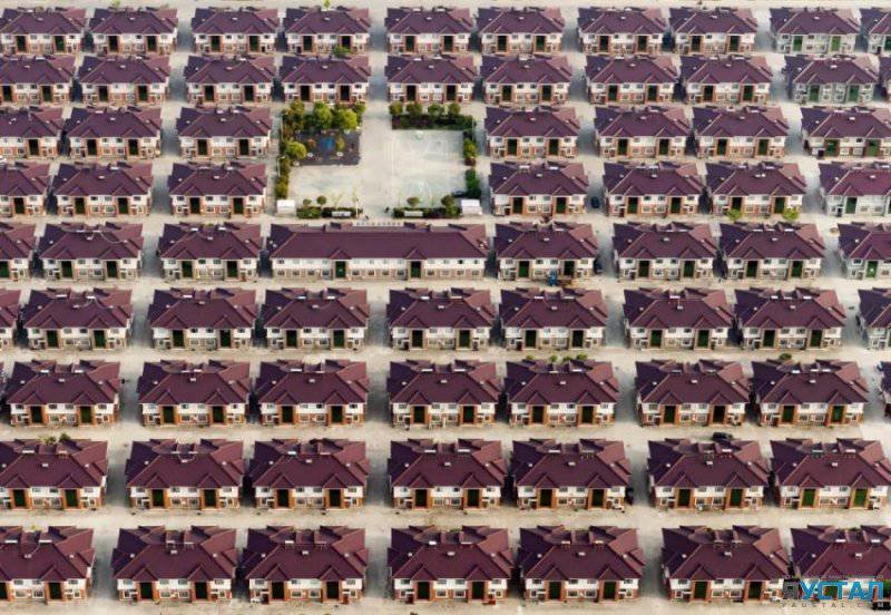 Провинция Цзянсу (Китай), ряды однотипных домов с детской площадкой в середине.