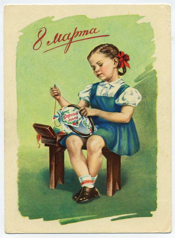 Открытки к 8 Марта — отдельная история. Мы коллекционировали открытки, вырезали из них фигурки и делали аппликации, перерисовывали на деревянные доски и выжигали. И все это — чтобы сделать подарок своими руками и порадовать своих мам и бабушек.