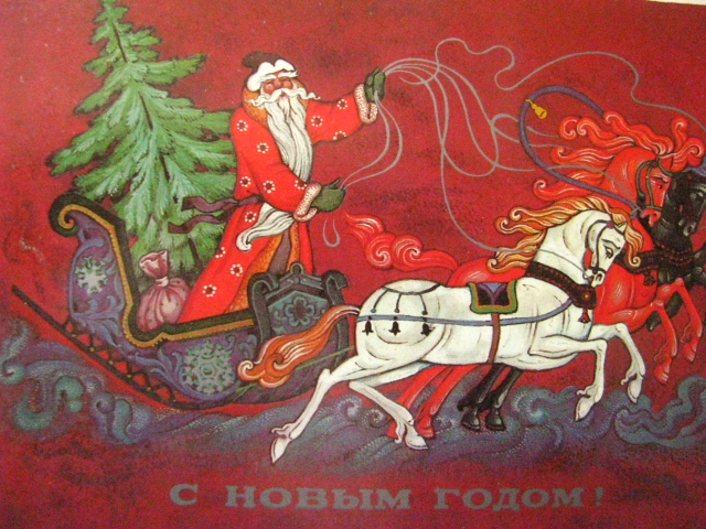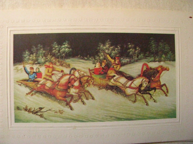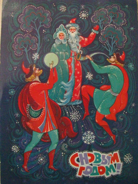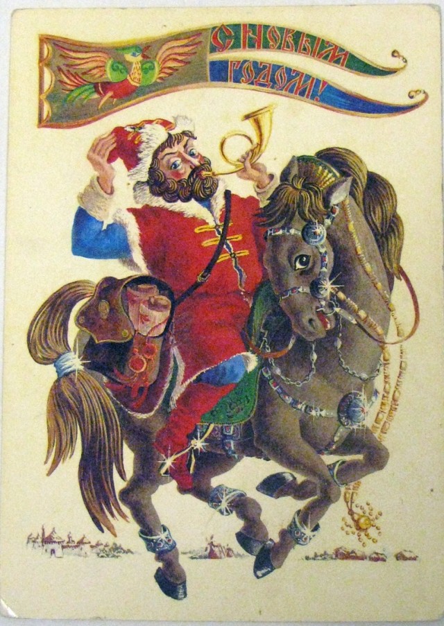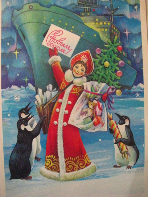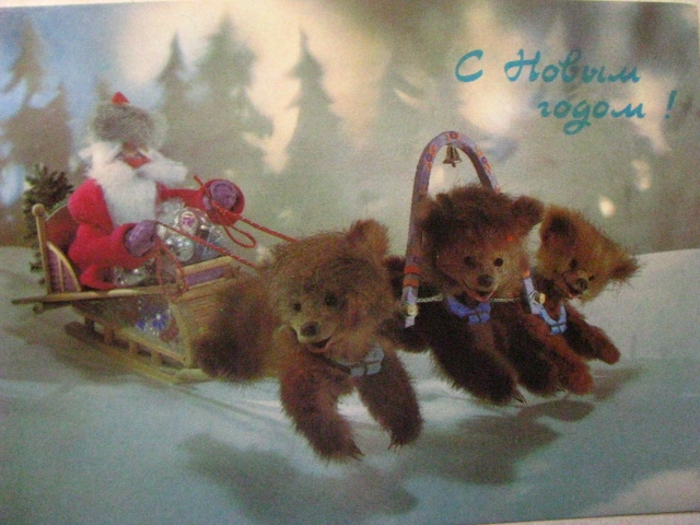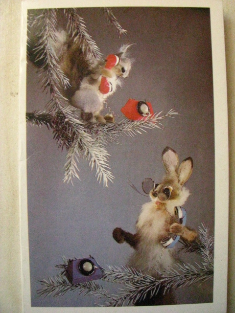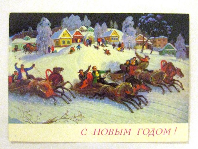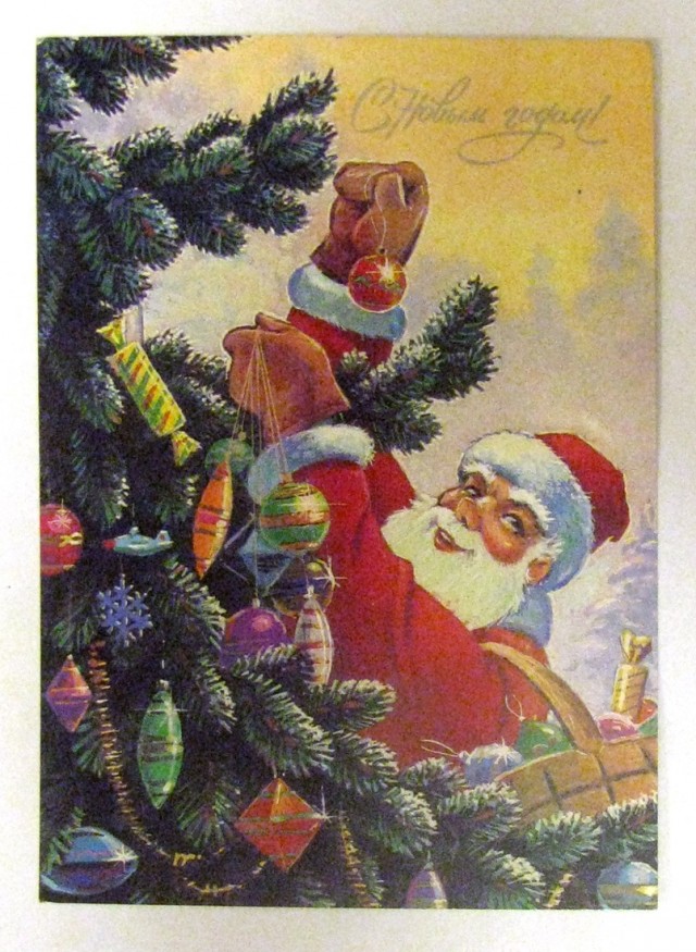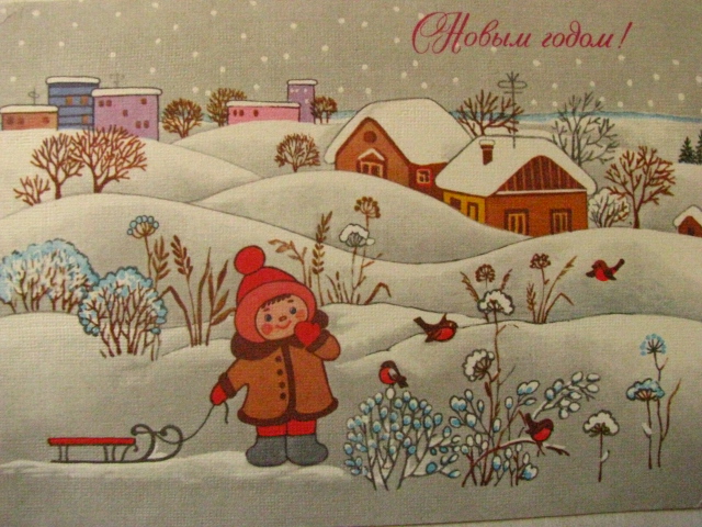 Был на рынке старых вещей и на волне воспоминаний ещё купил несколько на разные праздники (естественно, неиспользованных). Написал поздравительные слова, купил на почте российские марки, приклеил их и отправил друзьям и знакомым. Может быть, им будет приятно (мне было бы да).