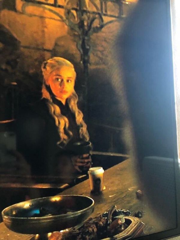 На 18-й минуте сериала в одной из сцен наблюдательные зрители заметили то, что явно выбивается из "средневековой" обстановки повествования: на столе рядом с "Матерью драконов" стоит картонный стакан для кофе из современных кафе. Это стало последней каплей для многих фанатов сериала, которые уже давно критикуют его создателей за многочисленные ляпы и нестыковки вроде "телепортации" персонажей — необъяснимо быстрого перемещения в условиях неразвитых технологий транспорта.