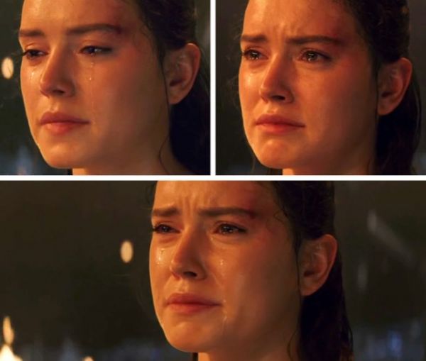 В одной из самых эмоциональных сцен Звездных войн: Эпизод VIII — Последний джедай, на левой щеке Рей была слеза, затем она мгновенно высохла, а затем вернулась туда, где была.