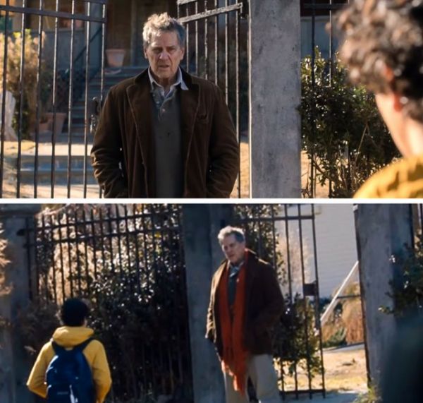 Красный шарф на человеке из Джуманджи: Зов джунглей появляется и исчезает в той же сцене.