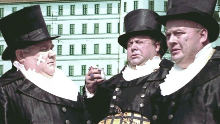 В повести Олеши у Толстяков не было обозначено социальное положение, они были просто богатыми злодеями. Сценарий требовал революционной конкретики, поэтому Толстяки получили царский титул «Ваше величество»… На их роли были утверждены Сергей Кулагин, Евгений Моргунов и Борис Христофоров. И без того фактурным актёрам дали задание прибавить в объёмах. Они изо всех сил придерживались вкусной антидиеты, но всё равно пришлось шить костюмы с утолщающими накладками.