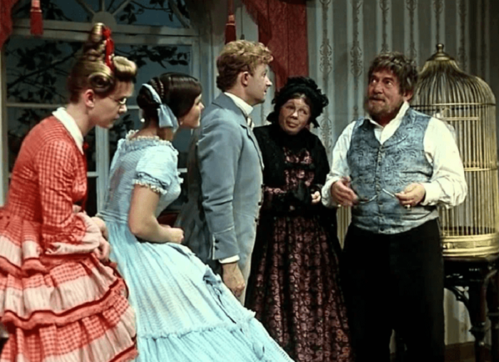 К тому же Матрена и в пьесе, и в фильме относится к Бальзаминову грубовато с изрядной долей здорового деревенского сарказма – «О, Хосподи!». Действительно, сколько же платили Матрене?