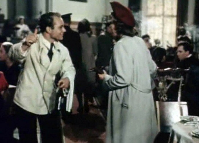 У Евгения Леонова в этом фильме была совсем крохотная роль - он сыграл официанта в ресторане.