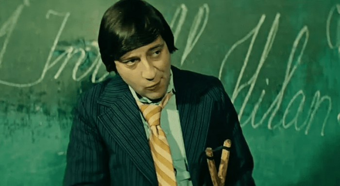 Хазанов был вдвое старше - ему вот-вот должно было исполниться 40. Но нелепая одежда в сочетании с великолепным перевоплощением позволили создать достоверный образ зеленого юнца.