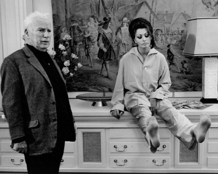 Чарли Чаплин и Софи Лорен на съёмках «Графини из Гонконга».