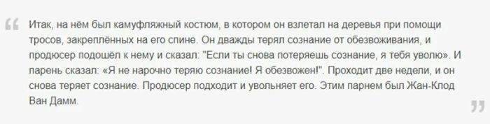 И вот, спустя 34 года с момента выхода фильма, актёр Билл Дьюк, сыгравший Мака, вызвался пролить свет на ситуацию. Как оказалось, бельгиец был уволен из фильма и-за того, что постоянно страдал от обезвоживания и терял сознание прямо в кадре.