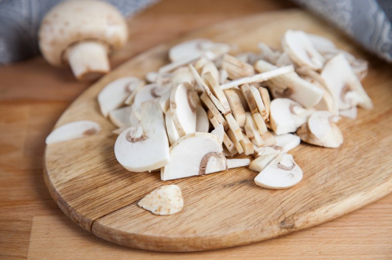 Совет! Грибы можно брать и замороженные, не обязательно шампиньоны, сгодится и «лесной сбор». В этом случае перед жаркой их нужно положить в дуршлаг и быстро промыть водой, чтобы растаял лишний лед. Кроме того, лук стоит обжарить до грибов, иначе он получится не жареным, а больше вареным.