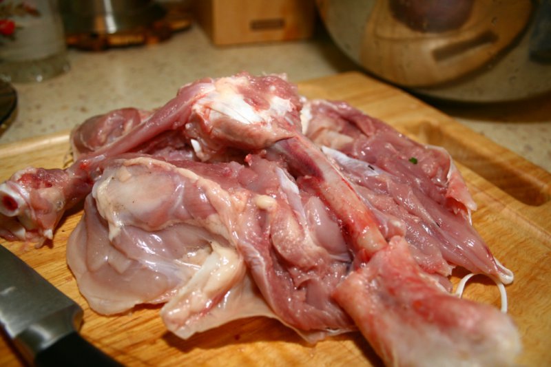 Извлекаем из нее кость. При удобном ноже с хорошей режущей кромкой это можно сделать за минуту, не больше. При желании, полученное филе можно отбить ладонью или плоской частью молотка.