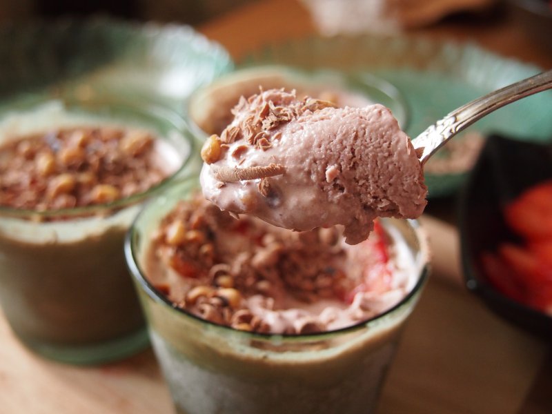Готовую смесь разлили по стаканчикам, поставили в морозилку, следуя советам из рецептов, помешивали примерно каждый час, ну и вся начинка у нас конечно осела на дно, хотя не могу сказать, что это плохо)