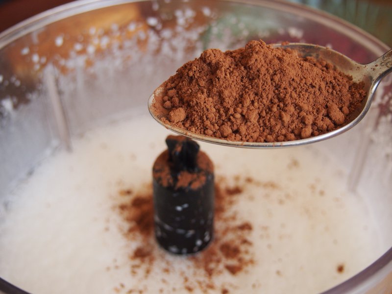 Сыпанули какао, даже больше, чем нужно, дальше взбиваем