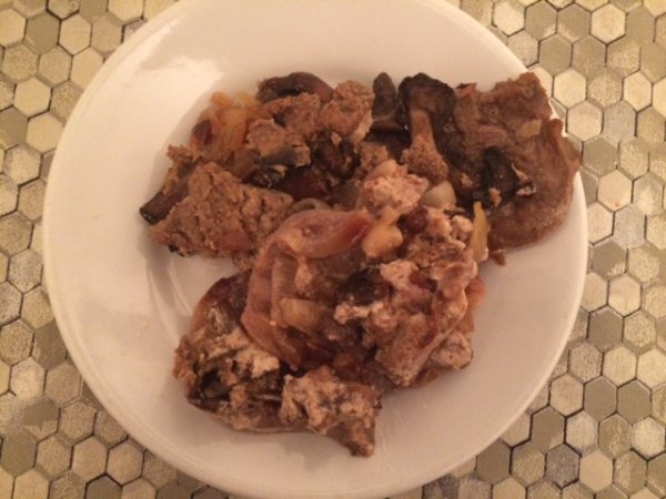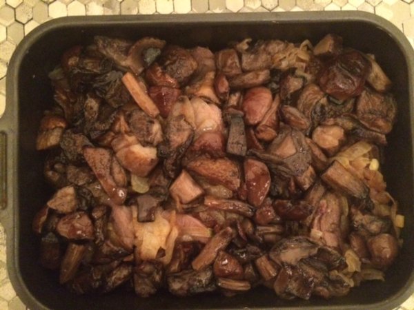 Конечно, и язык, и грибы, и орехи, и даже лук можно было бы съесть, не тратя столько усилий на их соединение, но я советую, в какой-нибудь холодный зимний вечер попробовать удивить домашних запеченным языком.