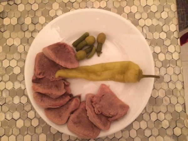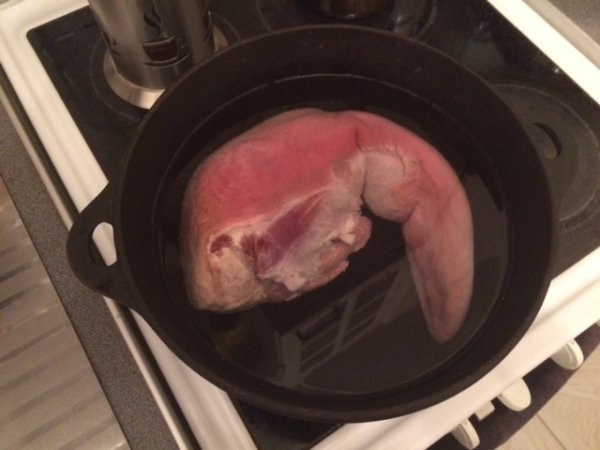 Делаем, как с куриным бульоном: даем языку закипеть и вспениться, ждем минут 10 и выливаем все к чертовой бабушке. Промываем язык, заливаем холодной водой, солим, добавляем специи и варим уже почти без пены 2,5-3 часа. Да, я говорю именно про говяжий язык, а не телячий и не хрюшечный – у них своя методика.