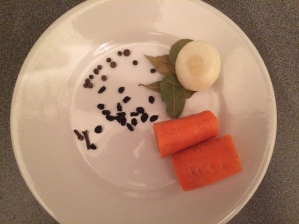 Что касается специй – личное дело каждого, но я для себя решил, что оптимальным будет следующий состав: лаврушка, разные перчики, чуть-чуть гвоздичек, небольшая луковица и половинка морковки. Я не смог придумать, куда я вторую половинку морковки в ближайшее время дену, поэтому кинул обе. Еще я добавил барбарисовых ягод, я его теперь почти во все блюда с мясом добавляю, не знаю почему. Наверное, каких-то барбарисовых витаминов мне не хватает.