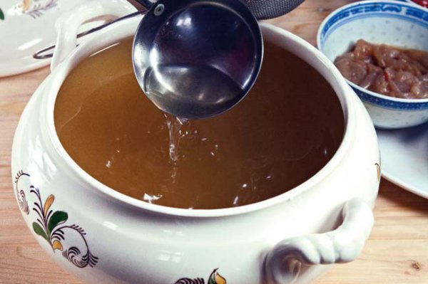Основа этого блюда (или блюд - уж не знаю, как точнее сказать) - конечно, бульон, который готовится загодя и даже впрок, потому что его можно разлить по одноразовым стаканчикам с крышками, поставить в морозилку и использовать по мере надобности. Бульон может быть как овощным, так и сваренным на мясе или нежирной рыбе. Что касается мясного бульона, важно, чтобы он варился, что называется, на постных отрубах, короче говоря, на постной говяжьей мякоти - никаких костей и никакого жира. Далее вы поймёте, почему.