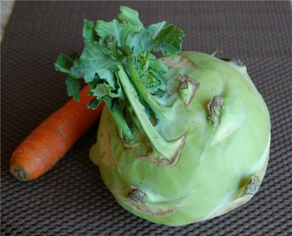 Кольраби - овощ, который совсем не похож на капусту, хотя это один из ее видов и тоже входит в капустное семейство. Древние римляне называли это растение «каулорепа», то есть стеблевая репа. Отсюда и произошло современное название этого овоща: римское «каулорепа» превратилось в «кольраби». В кольраби в пищу идут не листья а стебель, который по вкусу напоминает кочерыжку обычной белокочанной капусты, но намного мягче и слаще. Цвет стебля может быть светло-зеленый, светло-фиолетовый, малиновый и темно-фиолетовый. Мякоть - белая, сочная. В нем содержится много витамина С, сахара, белка масса других полезностей - кольраби нередко называют северным лимоном.