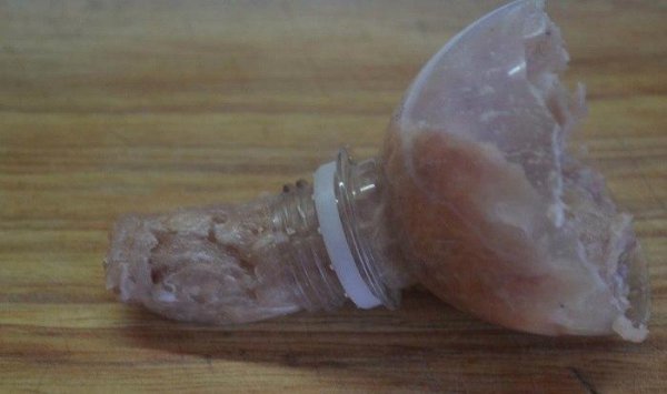 Теперь из фарша надо сформировать колбаски продолговатой формы - чевапчичи. Это можно сделать мокрыми руками или же воспользоваться пластиковой бутылкой.