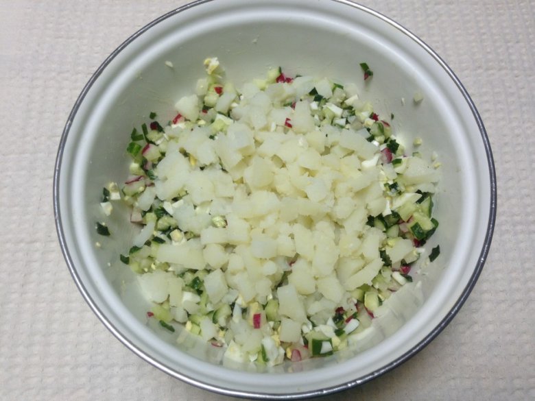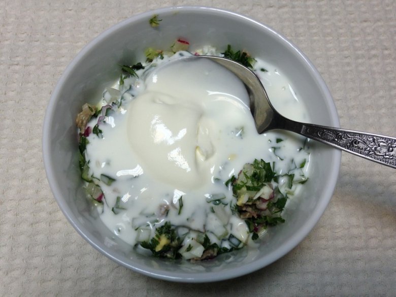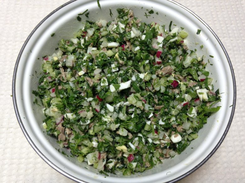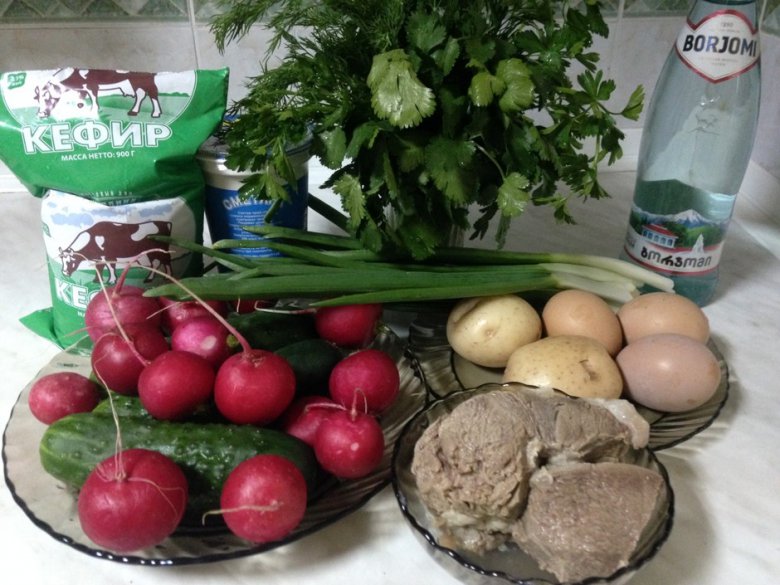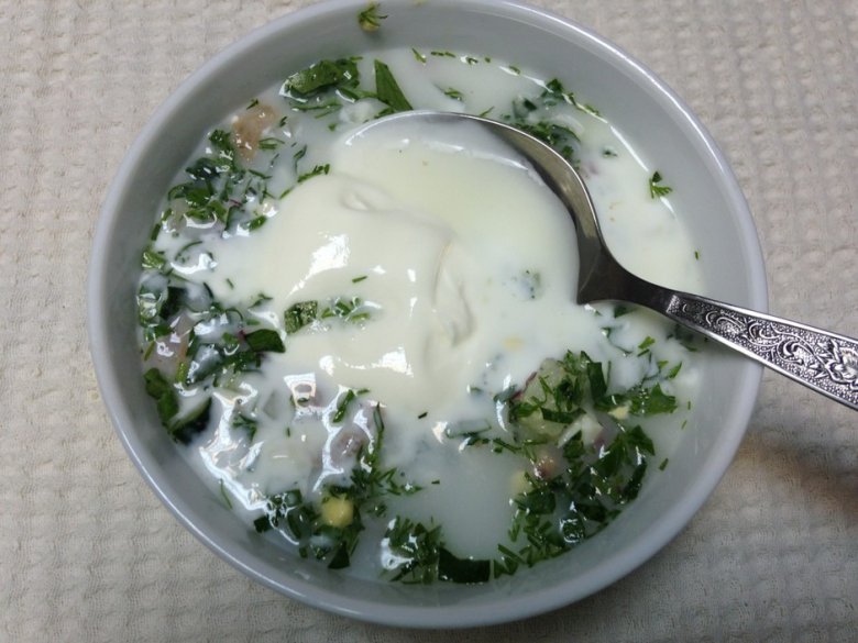 Окрошка - самое популярное блюдо лета. Залитая прохладным кафиром, посыпанная рубленной ароматной зеленью - то, что нужно в жару.