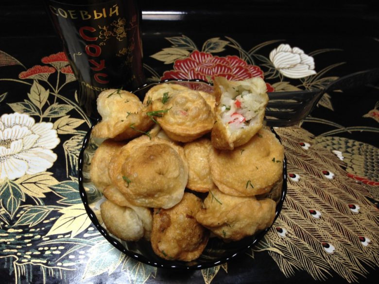 Если к Вам неожиданно в гости пришли друзья, то можно их накормить жареными пельменями с рисом и крабовыми палочками. Все останутся довольны!