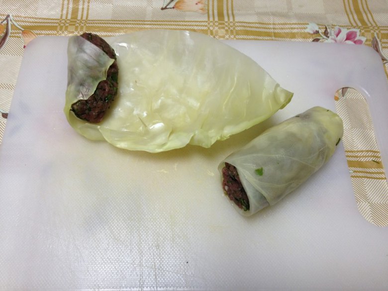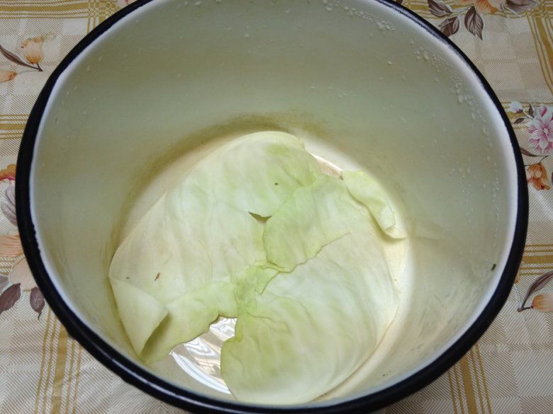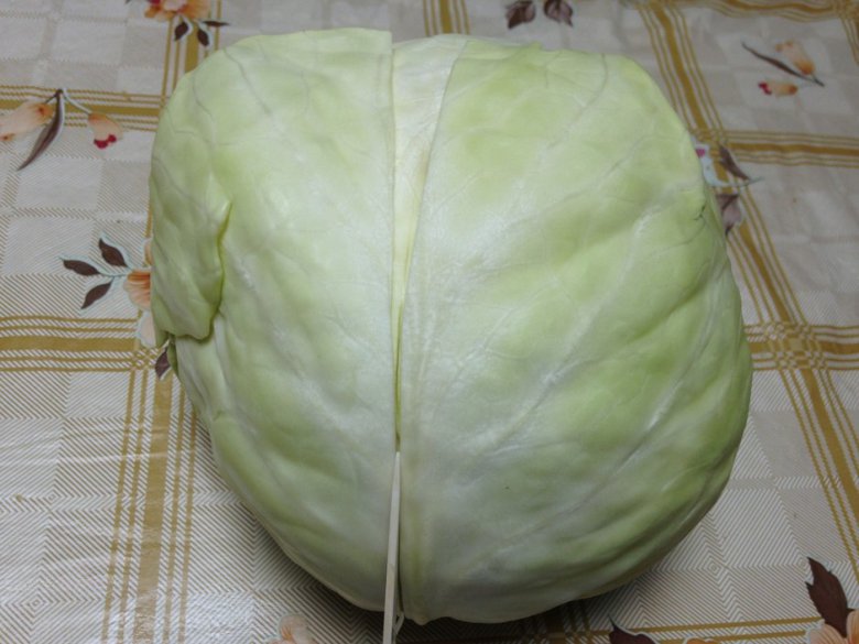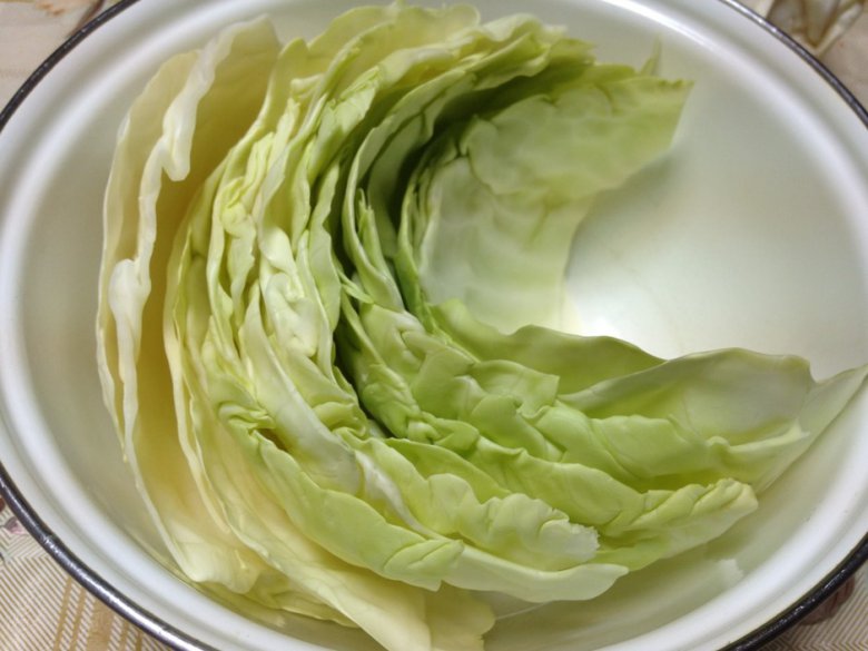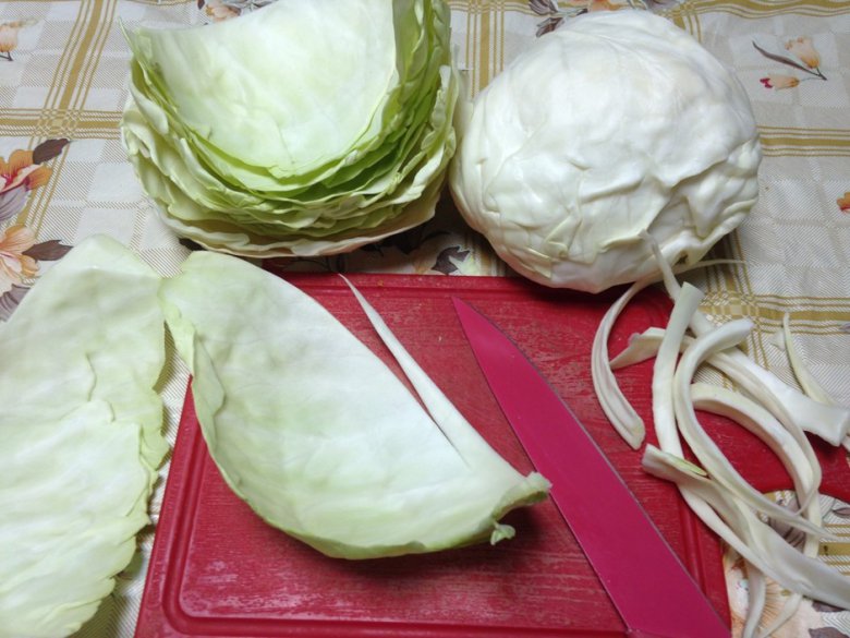 Снять листья с капусты. Для этого нужно вырезать кочерыжку. Сделать надрез-разрез вдоль центральной жилы. Листья легко снимутся.