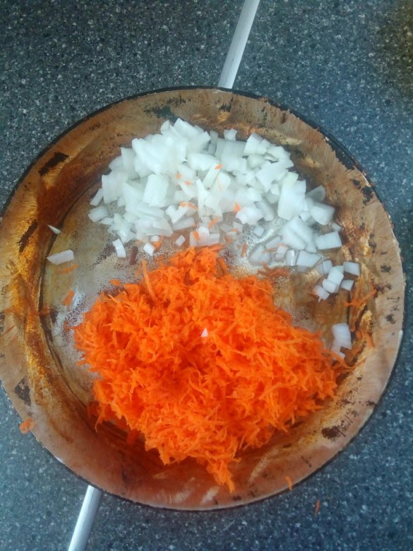 Лук и морковь с капелькой масла пассируем до золотистого оттенка.