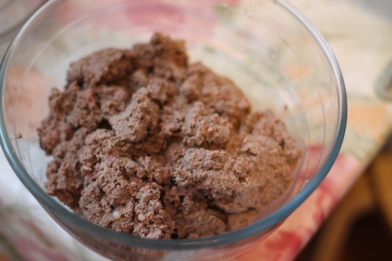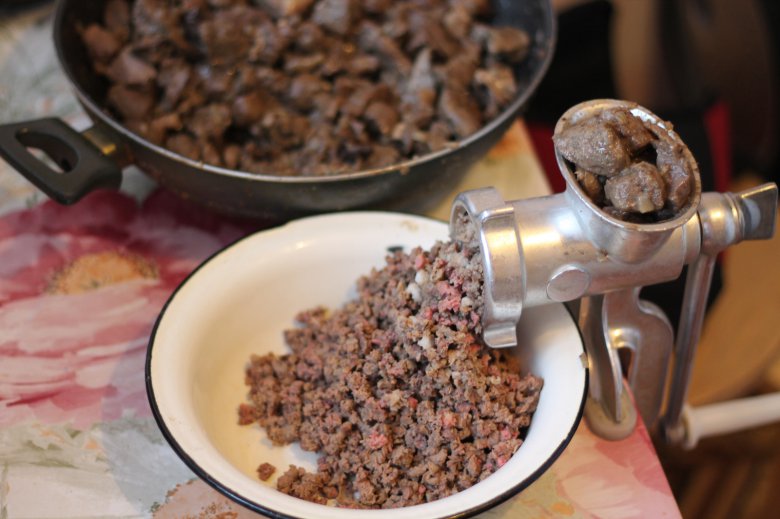 После того, как все это дело подостыло начинаем измельчение. В два этапа, сначала в мясорубку, затем в комбайне, до почти однородной массы.