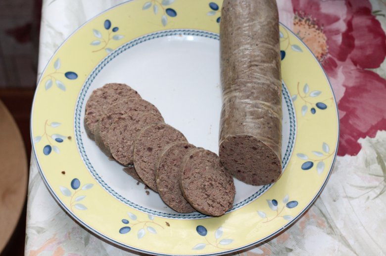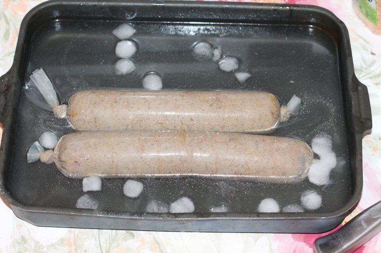 Когда наша колбаса остыла, помещаем ее в холодильник, чтобы отлежалась на ночь. На выходе получаем щикарную ливерную колбасу. Я сам не ожидал, что получится так вкусно. Думаю, если добавить в середине процесса зелень и сливки и перемолоть до состояния манной каши получился бы отличный паштет.