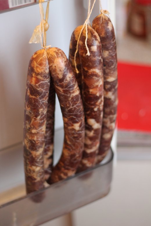 Висит с начала недели, еще 3-4 и буду употреблять под пиво пряную сыровяленую колбасу