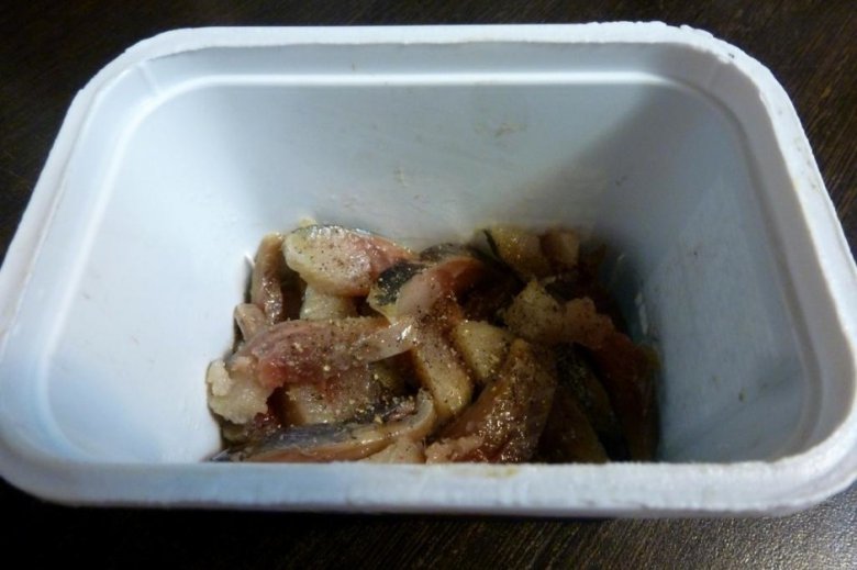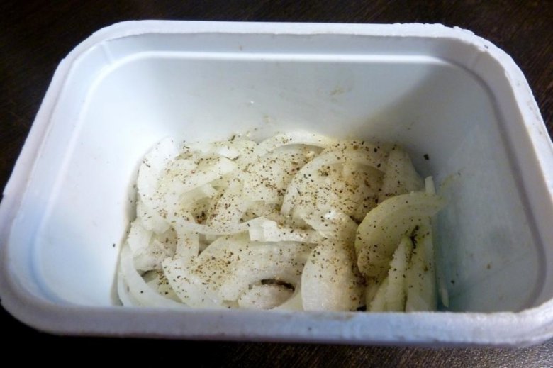 Выложить салат слоями и дать ему настояться несколько часов, а лучше оставить в холодильнике на ночь. Первый слой — нарезанная селедка. Поперчить и посыпать щепоткой сахара. Не бойтесь, сладко не будет!