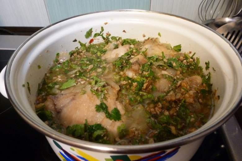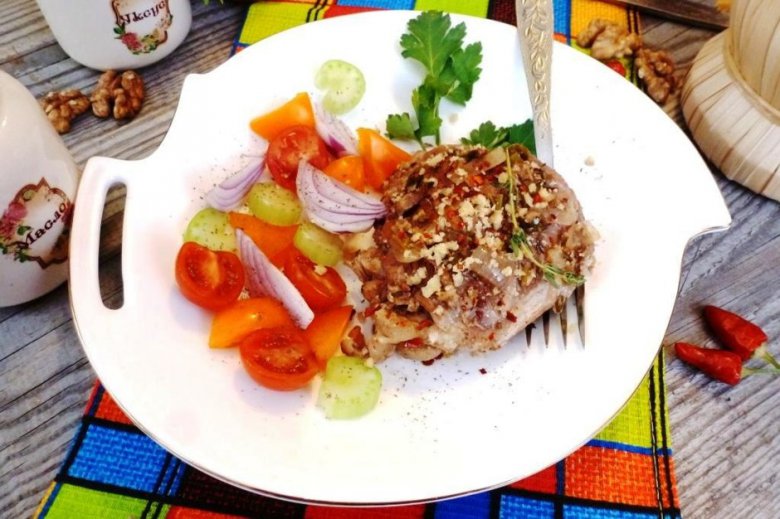 Приготовьте на ужин ароматнейшее блюдо грузинской кухни – гурули – курицу с грецкими орехами, зеленью и винным уксусом. Уверяю, вы удивите своих близких, еще и соседи сбегутся на запах!
