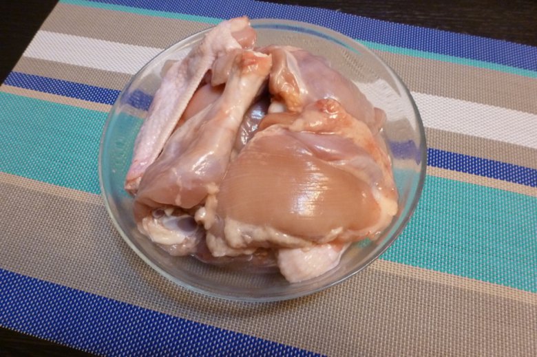 Подготовить продукты по списку. Для удобства и быстроты приготовления рекомендую взять бедра или голени курицы. В рецепте много специй и винный уксус. Вам может быть слишком остро и пряно, поэтому кладите специи и пряности на свой вкус! Советую винный уксус развести водой и добавить немного сахара. Если взять уже разделанные куриные полуфабрикаты (голени, крылышки или бедра), то управиться можно за 30 минут: 10 минут на обжарку кусочков и 20-25 минут на тушение.