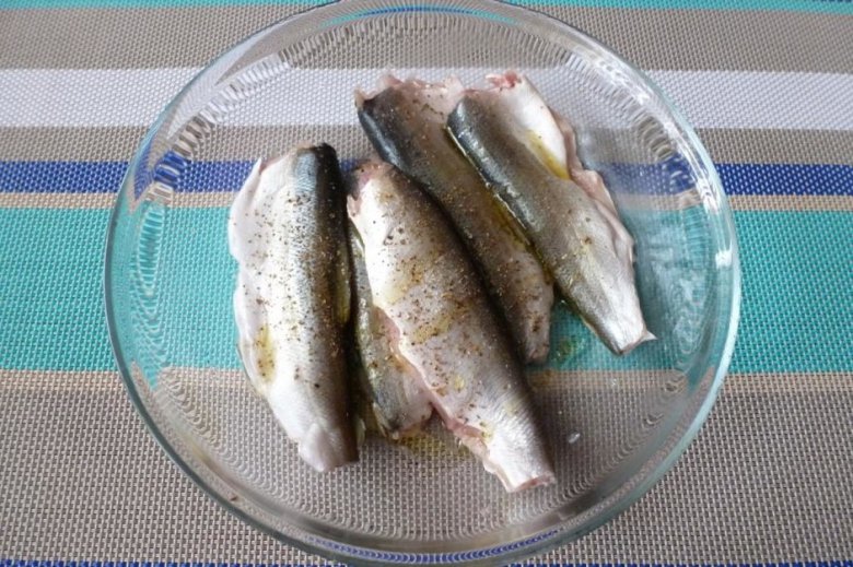 Рыбу почистить и вытащить хребтовую кость с ребрами, кожицу оставить.