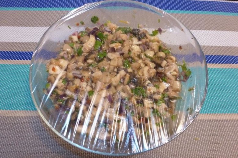 Залить грибы маринадом, добавить нарубленную кинзу, тщательно перемешать и отправить в холодильник на 4-5 часов (лучше – на ночь).