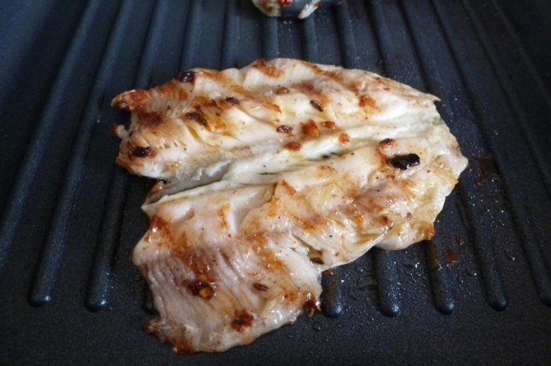 Жарить рыбу на гриле до готовности, по 2-3 минутки с каждой стороны.