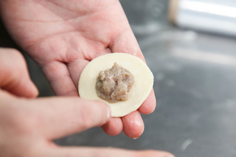 Перед тем, как слепить пельмень, ободок можно смазать водой и только потом соединить концы теста.
