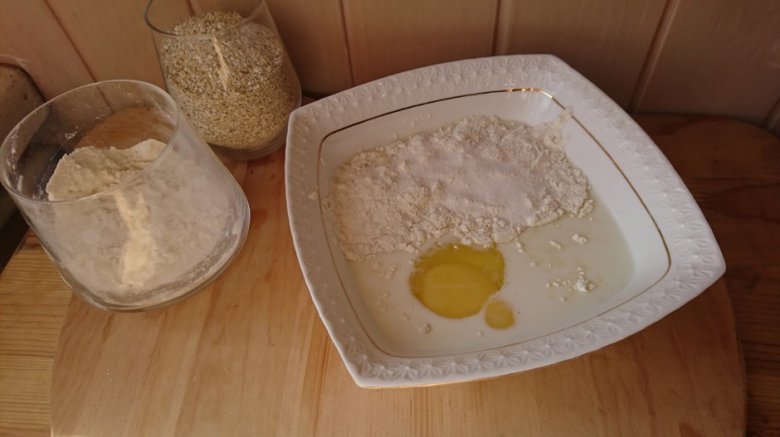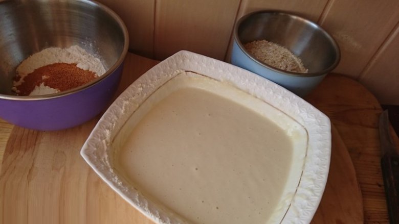 В отдельную миску насыпать оставшуюся муку. Смешать ее с острой приправой. В другую миску насыпать отруби.