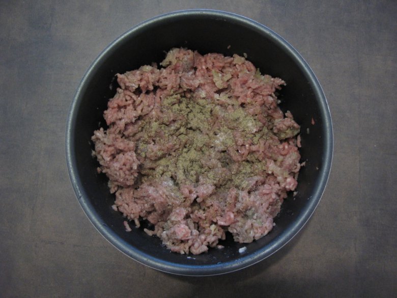 Промыть свинину в холодной воде и нарезать ее на небольшие кусочки. Луковицу очистить и разрезать на несколько частей. Кусочки свинины вместе с луком дважды пропустить через мясорубку. Получившийся фарш посолить, поперчить и перемешать.