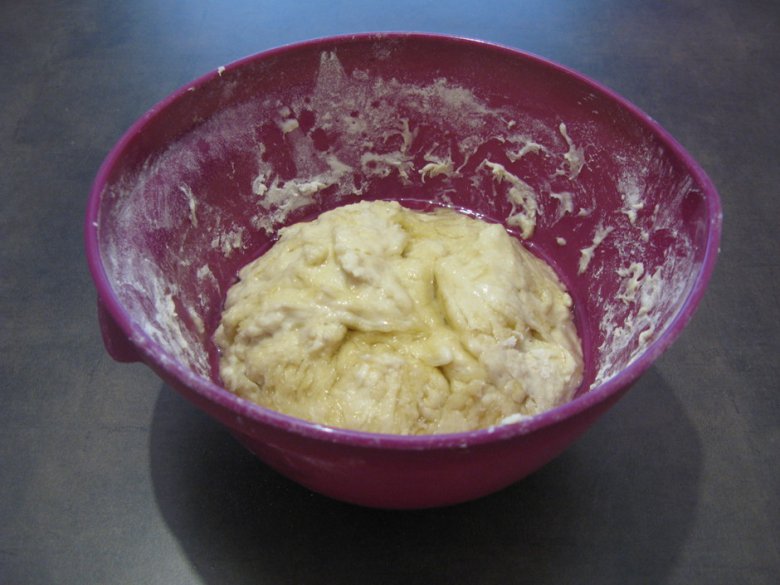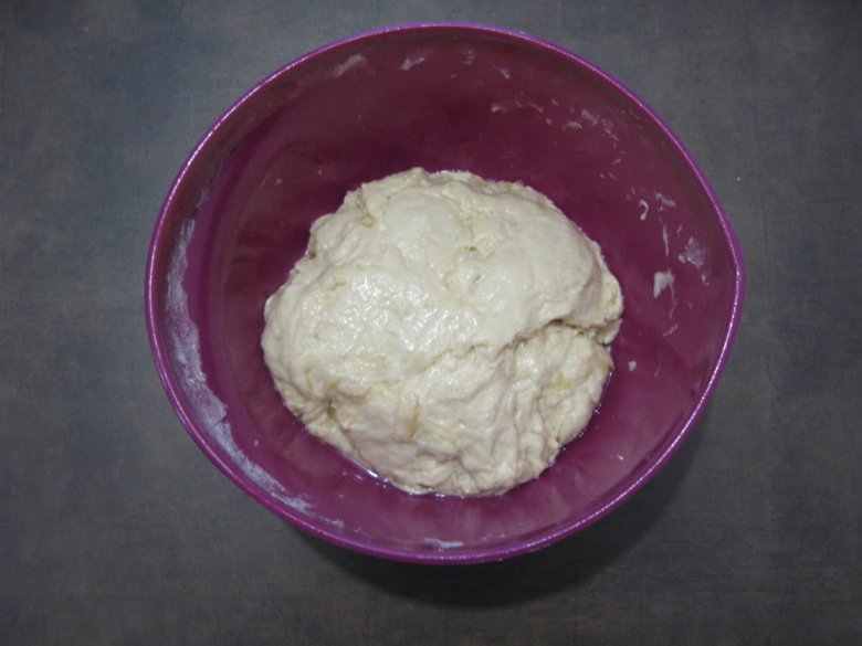 В металлическом ковшике разогреть растительное масло. Разогретое растительное масло постепенно вливать в тесто, постоянно вымешивая его.