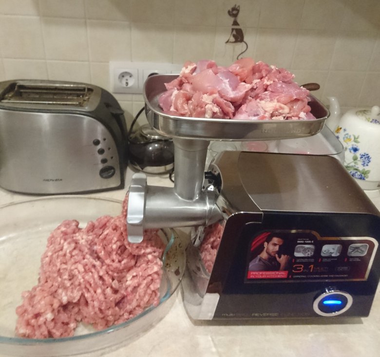 Перед измельчением, мясо подмораживаю в морозилке часок, так что бы его температура была ближе к нулю. Так же охлаждаю воду. Пропускаю через мясорубку один раз.