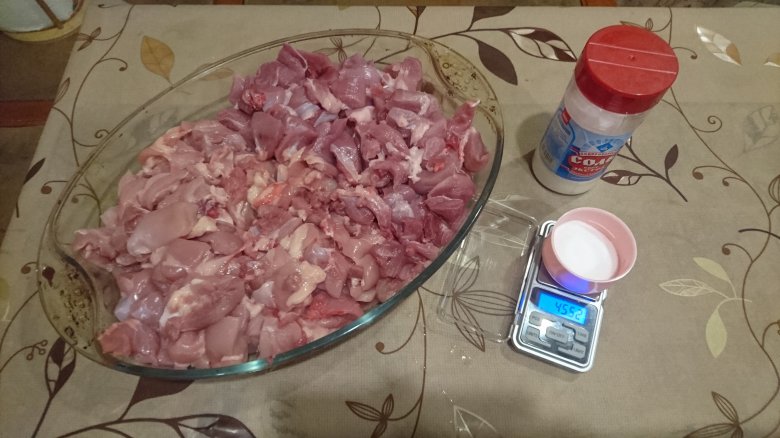 3. 1,7% соли (обычная поваренная) от веса мяса.