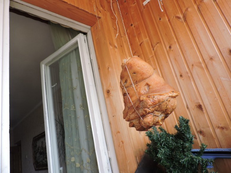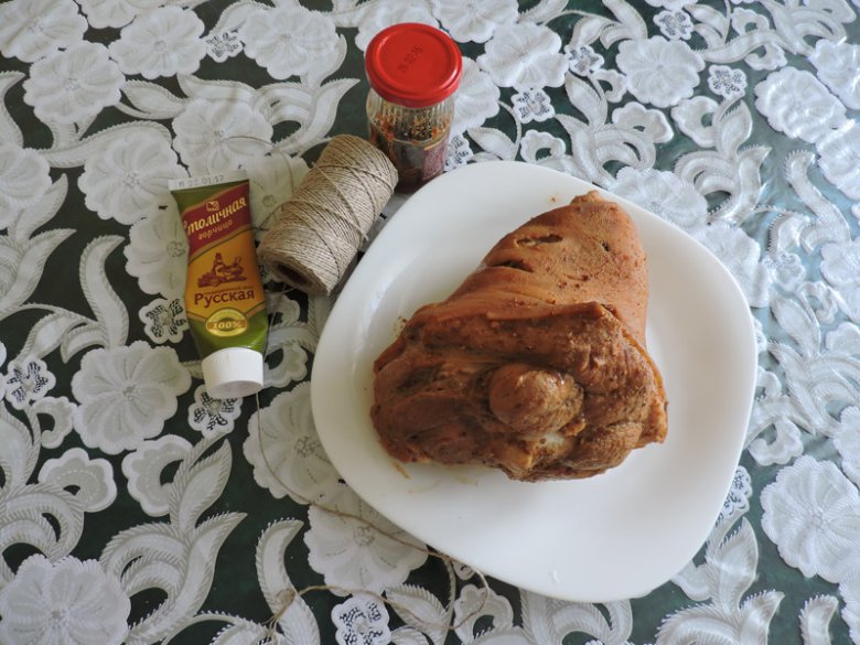 Затем ещё горячую рульку смазала горчицей и аджикой