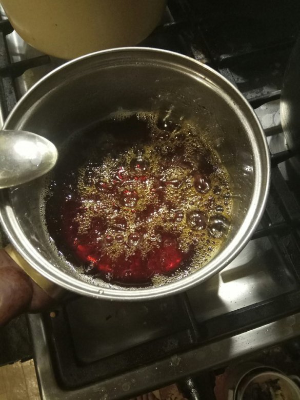 На следующий день ещё раз перемешиваем, добиваясь полного растворения карамелизированного сиропа, охлаждаем, и можно снимать пробу.