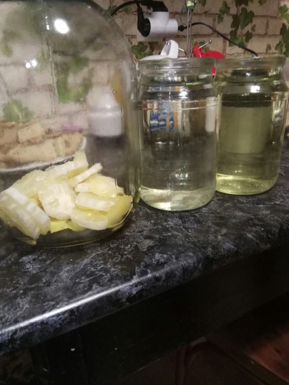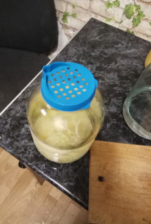 Я накрываю все это добро специальной крышкой с отверстиями. Можно использовать простую, вырезав в ней отверстие, диаметром около 20 мм. В противном случае будет привкус как у одеколона (по слухам).