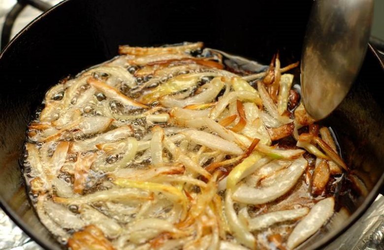 Нарезанный лук пассивируем в полученном масле.